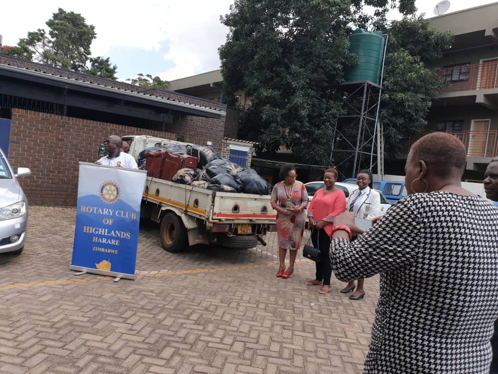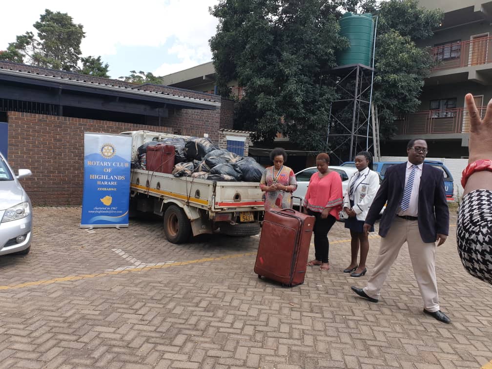 The Heritage School Interact club and Parents make a donation to the Highlands Rotary Club for Cyclone Idai victims.